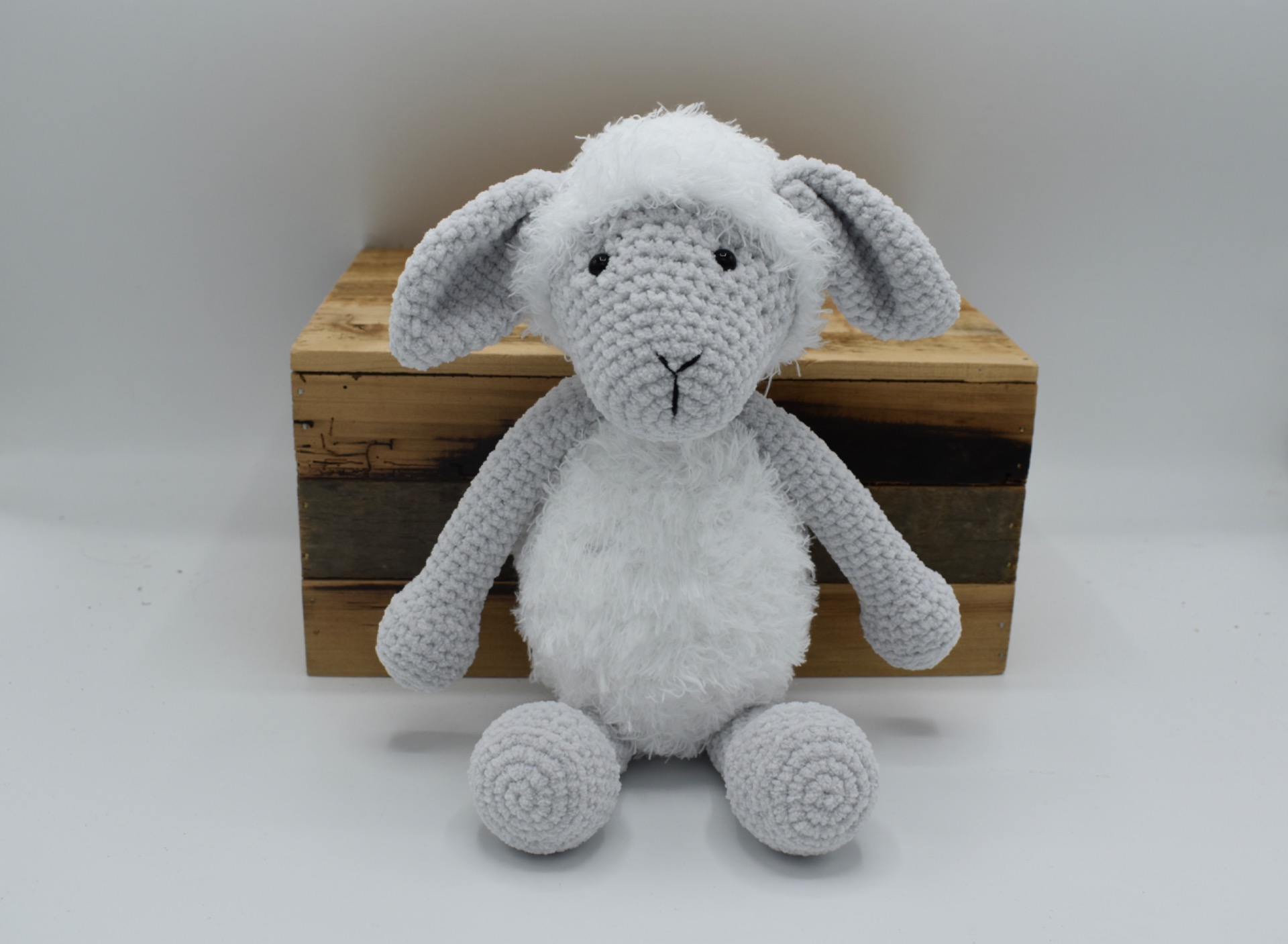 Heerlijk zacht knuffel schaap. Gehaakt met velvet en teddy garen. Het schaap Is zittend 21 cm hoog en heeft veiligheidsoogjes. Leuk ter decoratie en heerlijk om mee te knuffelen of te spelen.